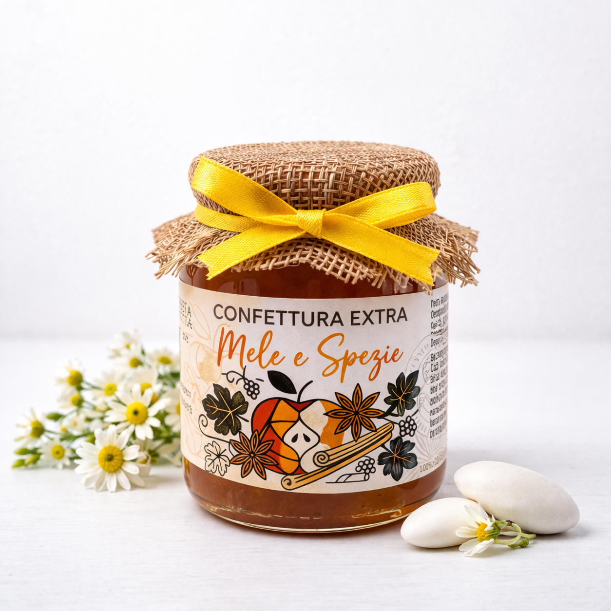 Questa confettura mele e spezie, preparata artigianalmente dai monaci benedettini del Monastero di Germagno, in Piemonte, nasce da una lavorazione lenta che esalta la bontà naturale degli ingredienti. Il profumo della cannella e la dolcezza delle mele regalano un gusto autentico e avvolgente.